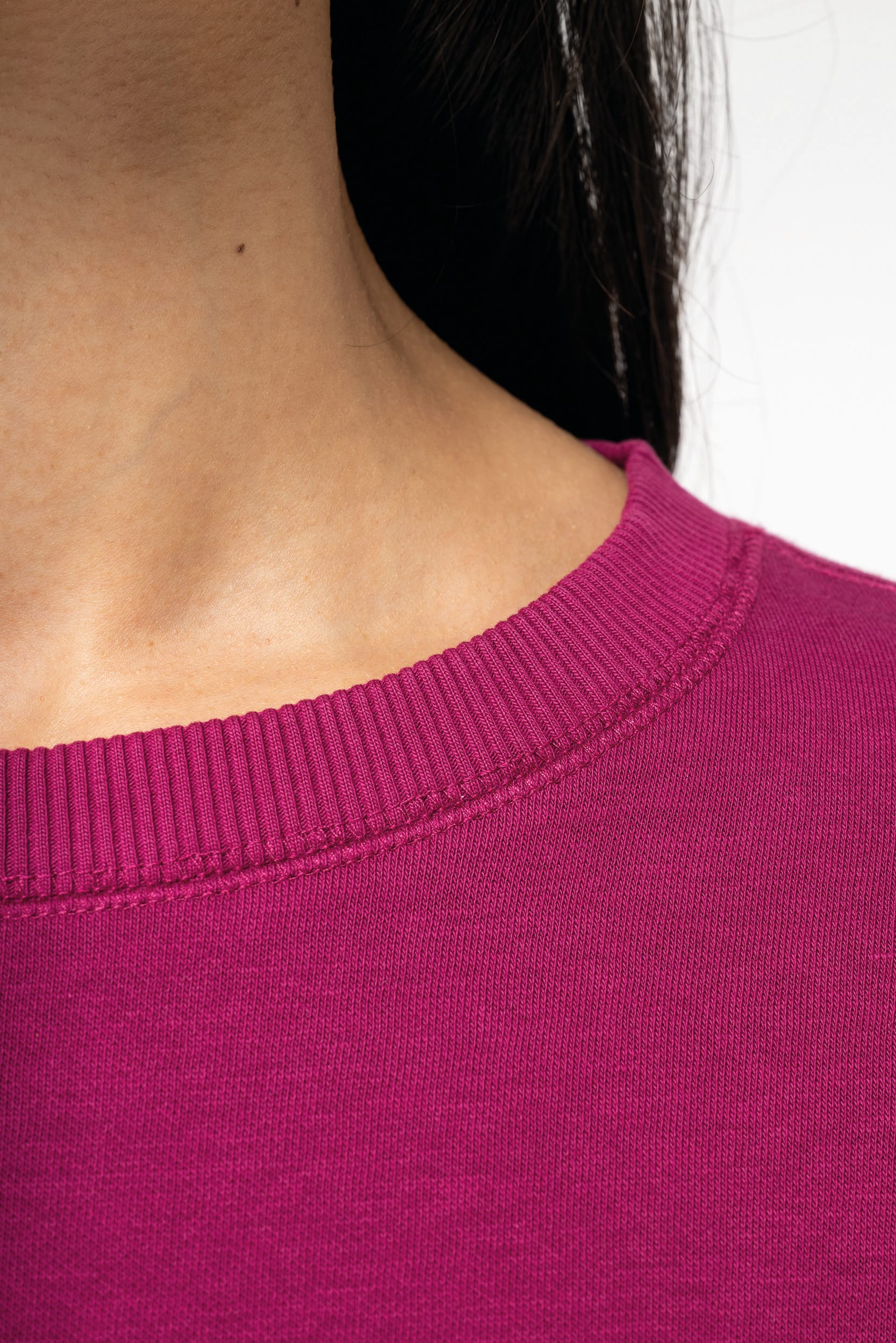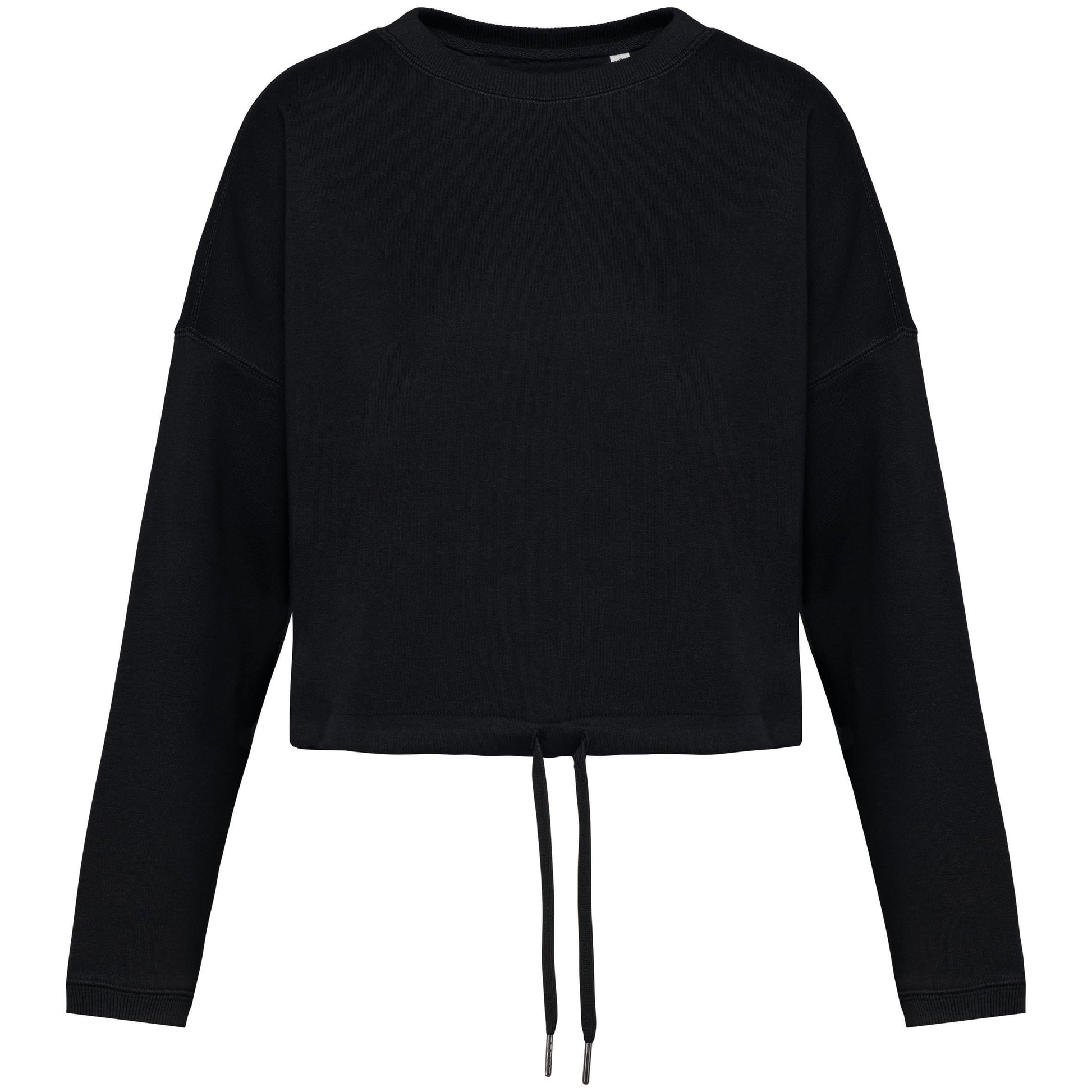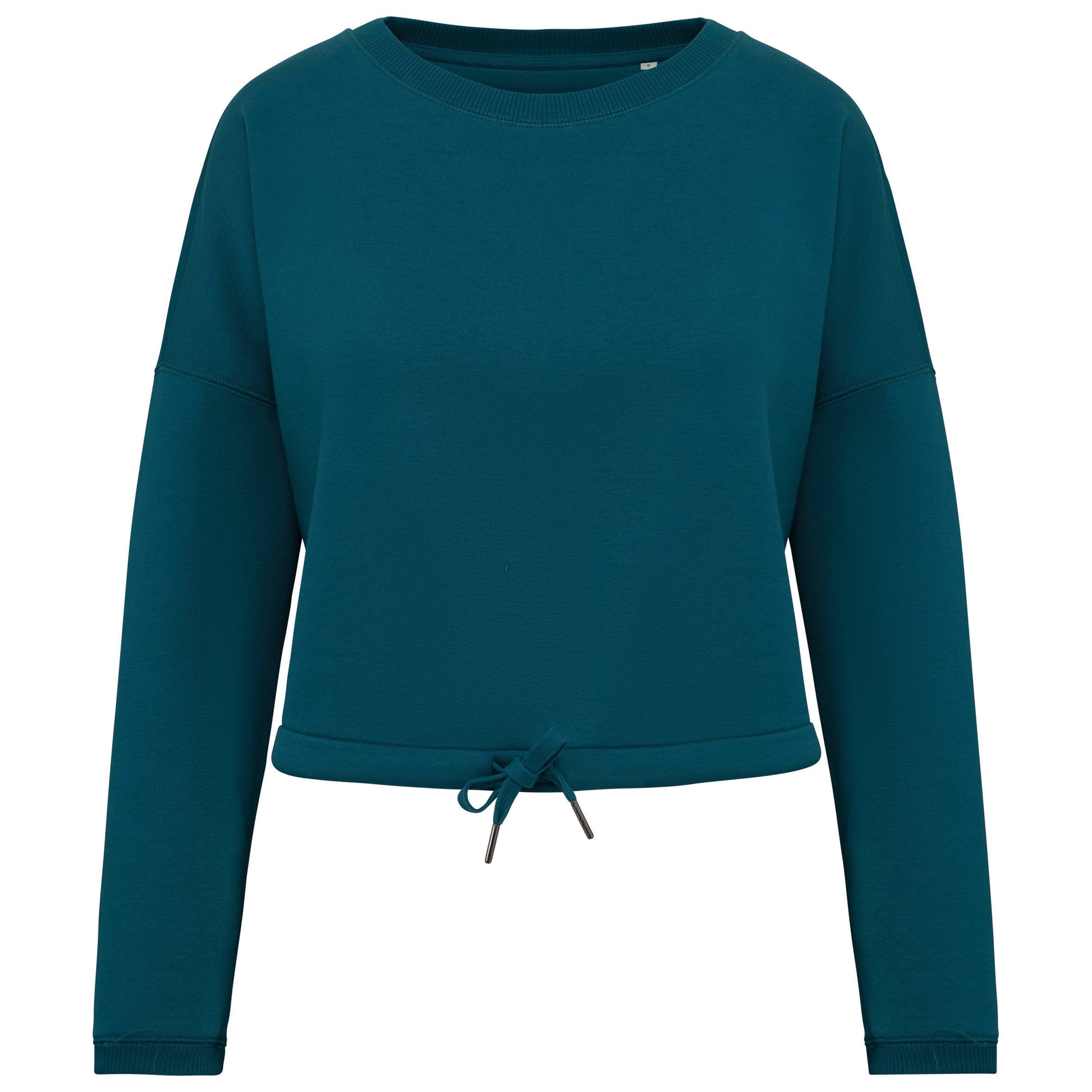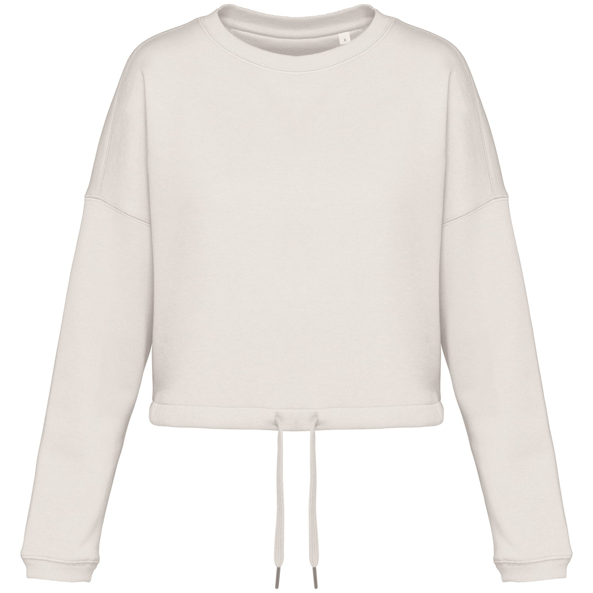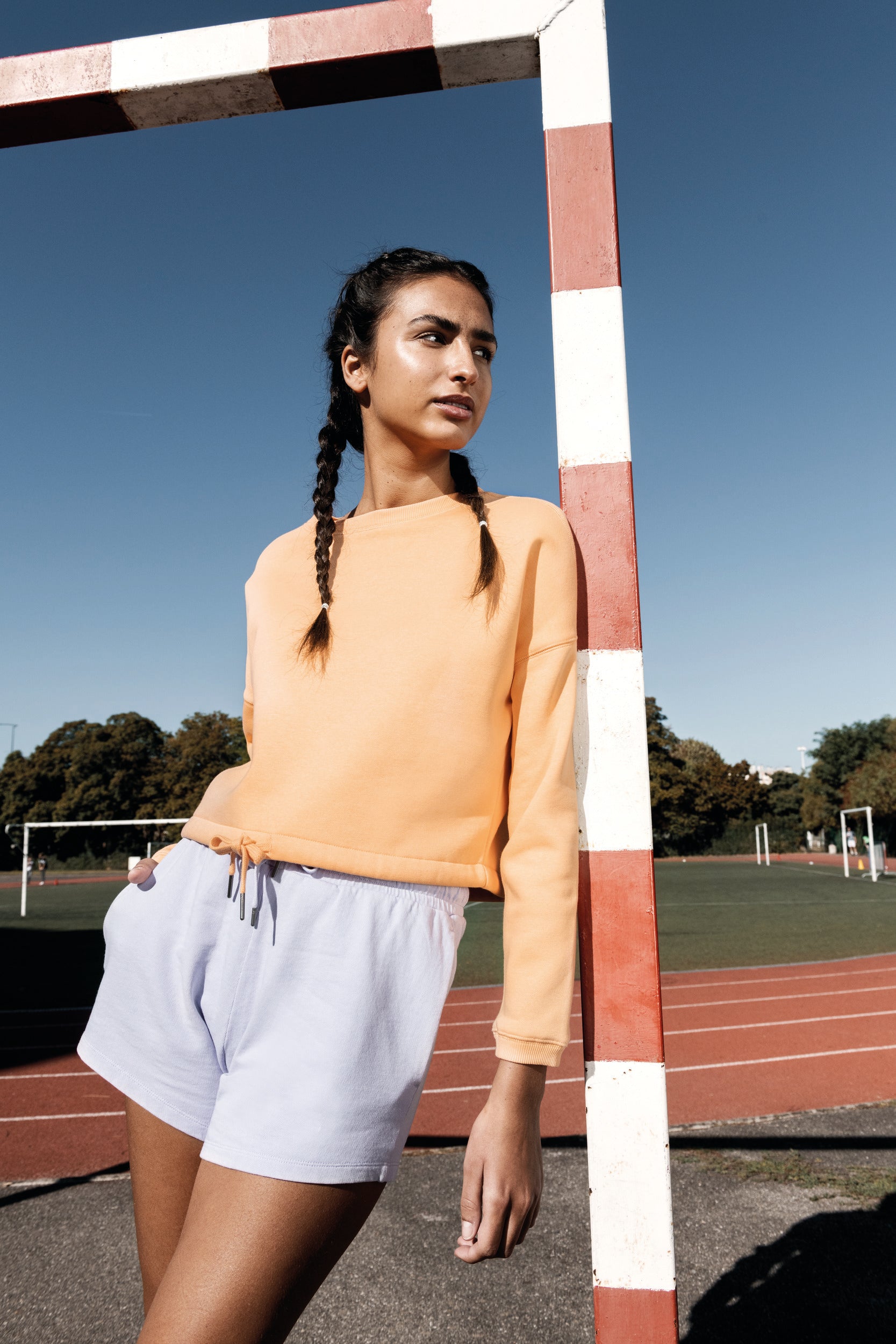 65% coton biologique / 35% polyester recyclé post-consumer. Coton peigné. Coupe oversize à épaules tombantes. Molleton gratté 3 fils LSF (Low Shrinkage Fleece : molleton pré-rétréci). 1/2 lune au dos. Lavé aux enzymes. Cordon de serrage plats en coton biologique bas de vêtement avec embouts en métal recyclé. Point de recouvrement à l’encolure, coutures épaules, emmanchures et bas de manches. Bord côte 2 x 1 au col et bas de manches. Encolure avec bande de propreté intérieure en chevrons.